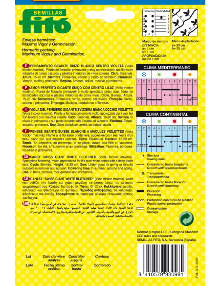 PENSAMIENTO GIGANTE SUIZO BLANCO CENTRO VIOLETA SU