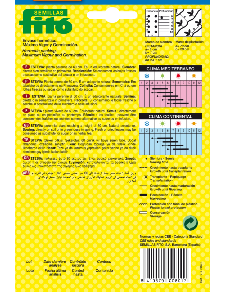 Stevia is a perennial plant that can reach 60 cm height. Its leaves (3-4 cm) are elyptical with a slightly jagged rim.