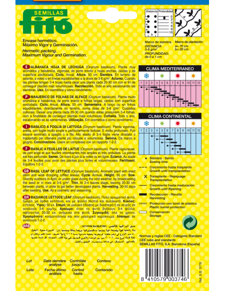 Annual plant with intensely aromatic and very large leaves (10 cm). White flowers appear in the summer.