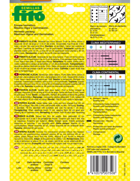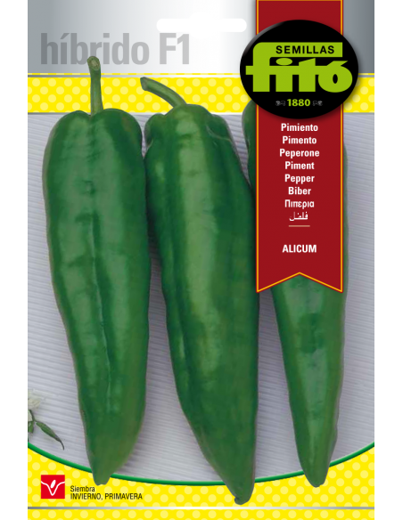 Sweet Italian type. Long and hom shaped fruit (22 cm long, 4-5 cm large). Very thin (3 mm) and smooth walls, no skin. For frying.