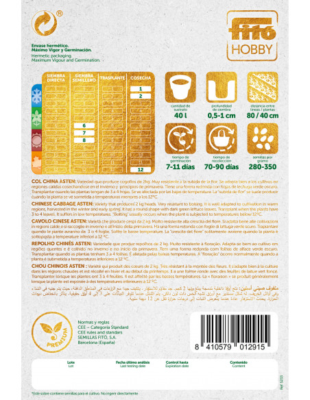 Variety that produces 2 kg heads. Very resistant to bolting. It is well adapted to cultivation in warm regions, harvested in the winter and early spring. It has a round shape with dark green lettuce leaves