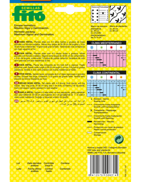 Tradicional cosecha primavera. Se trata de una obtención propia FITÓ a partir de la haba Aguadulce. Plantas altas, con 4-5 tallos fuertes y gruesos, hojas grandes con folíolos ovalados. Una de las características principales de esta variedad son sus vainas extralargas de 30-33 cm. de largo y 3 cm. de ancho, con 7-8 granos de gran tamaño. Variedad semiprecoz, con buena resistencia al frío.