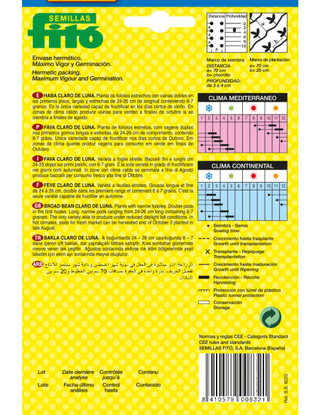 extra precoz cosecha invierno. Se trata de una obtención propia FITÓ. Variedad nueva que supone una mejora en precocidad (15-20 días) respecto a Luz de Otoño en zonas cálidas (clima mediterráneo). Al igual que Luz de Otoño, es capaz de fructificar en días cortos: sembrada en agosto, se obtienen vainas a finales de noviembre.